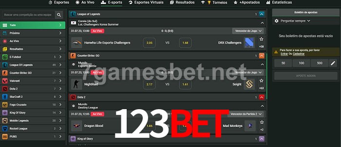 O 123Bet oferece uma grande seleção de opções de apostas em e-sports com probabilidades competitivas